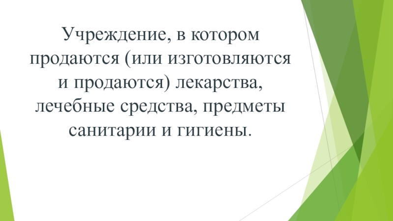 Слайд 6Учреждение, в котором продаются (или изготовляются и продаются) лекарства, лечебные средства,