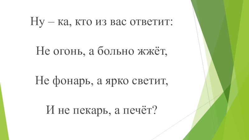 Слайд 9Ну – ка, кто из вас ответит: Не огонь, а больно жжёт, Не