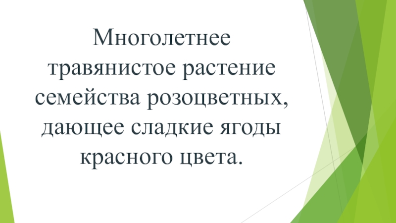 Слайд 14Многолетнее травянистое растение семейства розоцветных, дающее сладкие ягоды красного цвета.