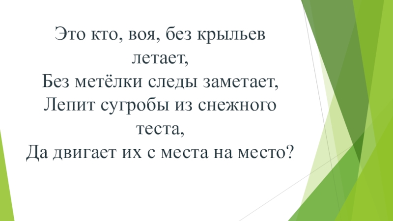 Слайд 11Это кто, воя, без крыльев летает, Без метёлки следы заметает, Лепит сугробы