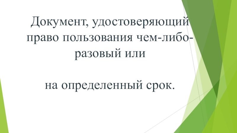 Слайд 10Документ, удостоверяющий право пользования чем-либо- разовый или на определенный срок.