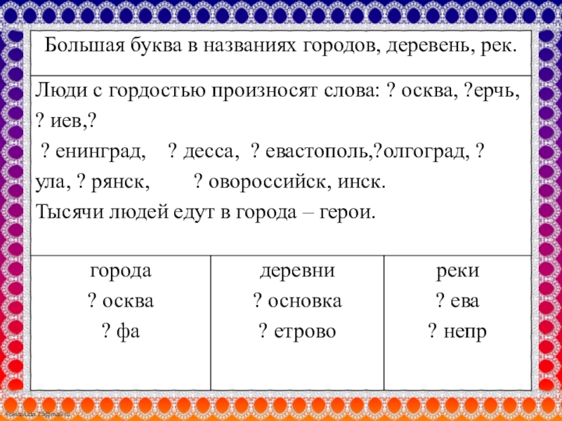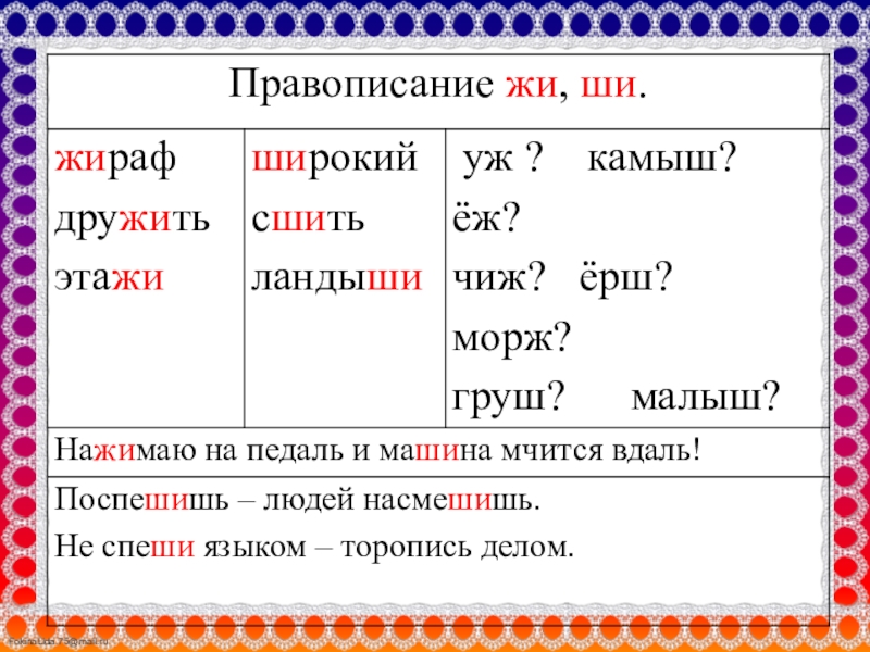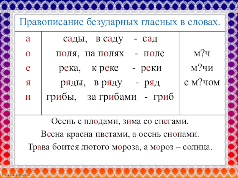 Презентация по русскому языку Таблицы для 1 класса Детские презентации