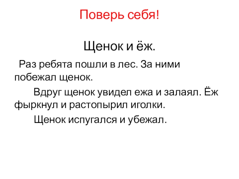 Поверь себя!  Щенок и ёж.    Раз ребята пошли в лес. За ними