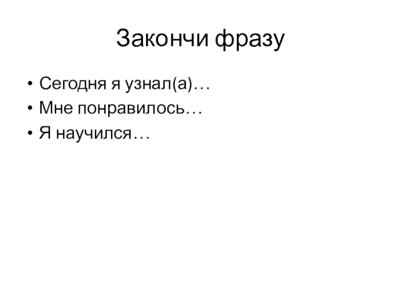 Закончи фразуСегодня я узнал(а)…Мне понравилось…Я научился…