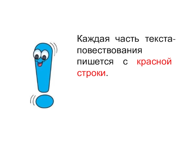 Слайд 7Каждая часть текста-повествования пишется с красной строки.