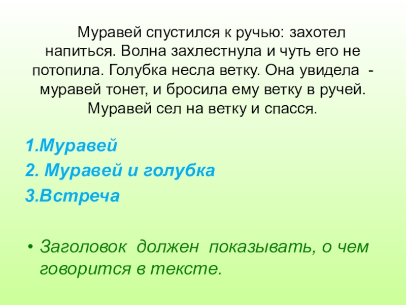 Заголовок должен показывать, о чем говорится в тексте.