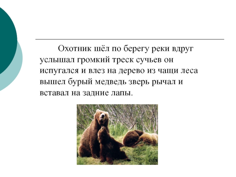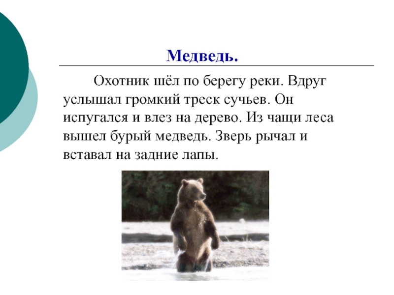 3. На полях белой скатертью лежит снег. А в это время спит медведь в берлоге. Он большой и сильный. Лапы крупные, шерсть густая. Медведю будет тепло в берлоге.