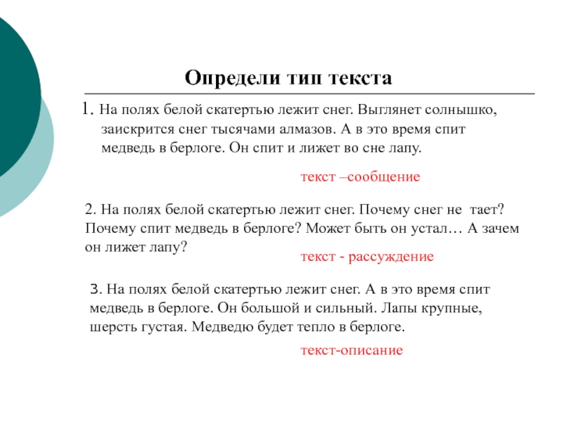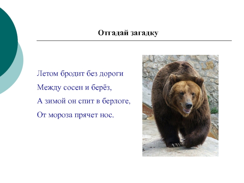 2. На полях белой скатертью лежит снег. Почему снег не тает? Почему спит медведь в берлоге? Может быть он устал… А зачем он лижет лапу?