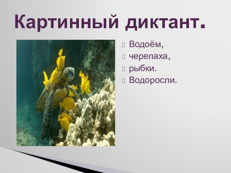 Водоём, черепаха, рыбки.Водоросли.Картинный диктант.