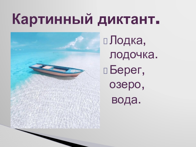 Лодка, лодочка.Берег, озеро, вода.Картинный диктант.