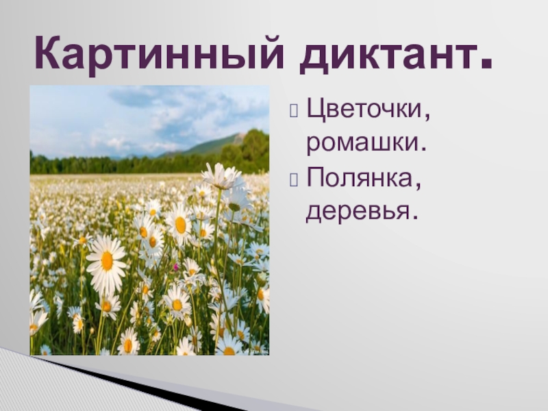 Цветочки, ромашки.Полянка, деревья.Картинный диктант.