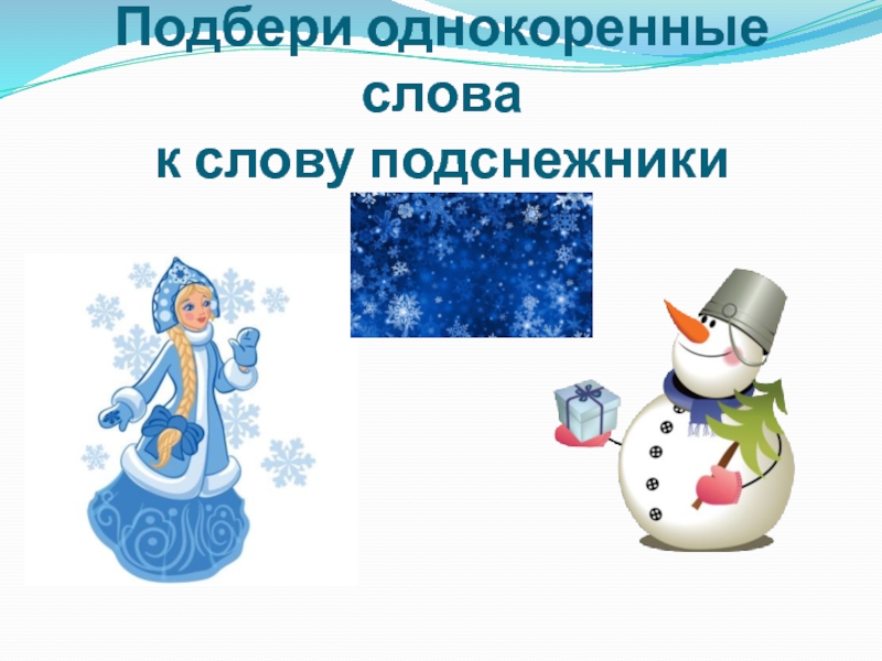 Слайд 11Подбери однокоренные слова к слову подснежники