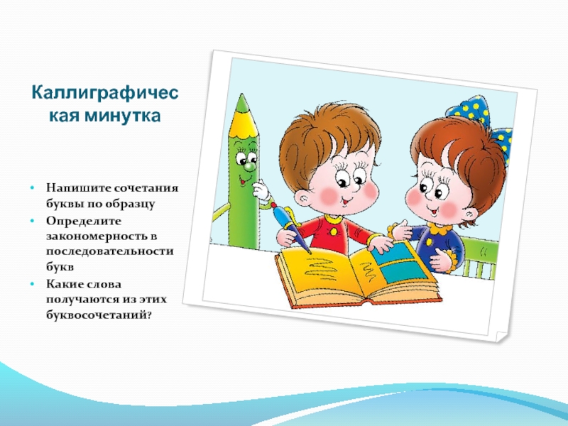 Каллиграфическая минуткаНапишите сочетания буквы по образцуОпределите закономерность в последовательности буквКакие слова получаются из этих буквосочетаний?