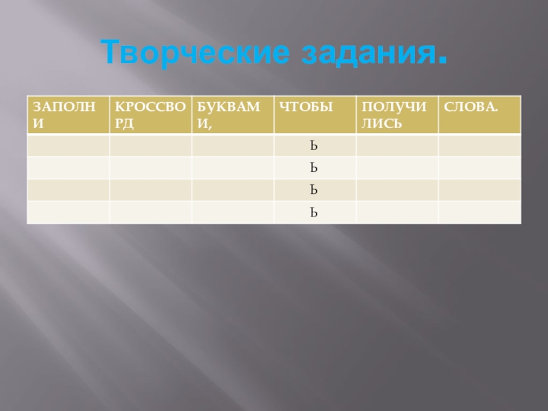 Слайд 1Творческие задания ПО РУССКОМУ ЯЗЫКУ.