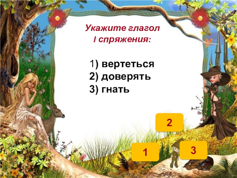 213Укажите глагол  I спряжения: 1) вертеться2) доверять3) гнать
