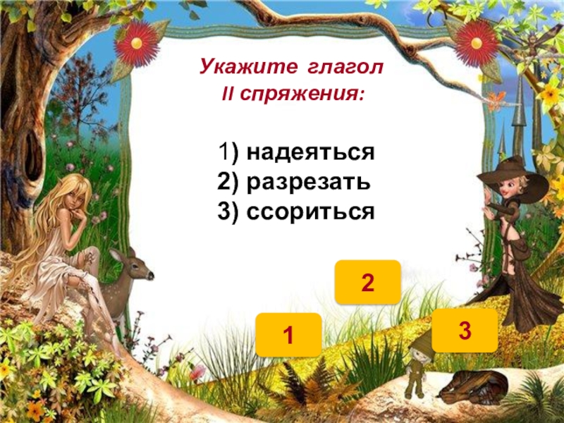 3 1Укажите глагол  II спряжения:1) надеяться 2) разрезать 3) ссориться 2