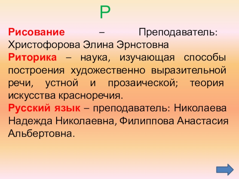 Русский язык – преподаватель: Николаева Надежда Николаевна, Филиппова Анастасия Альбертовна.