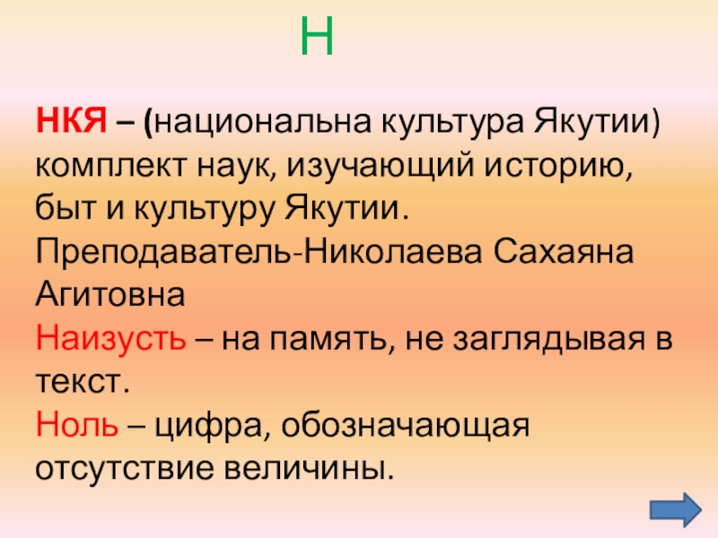 НКЯ – (национальна культура Якутии) комплект наук,