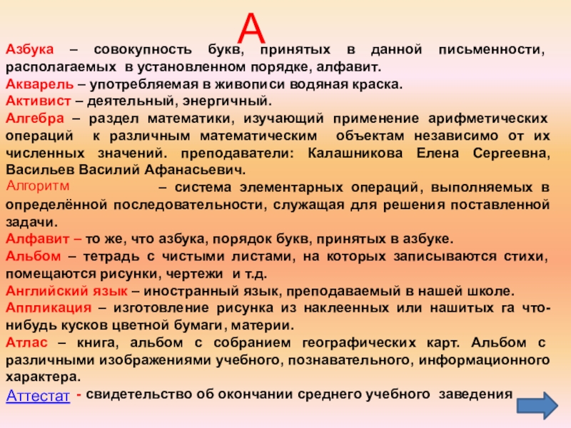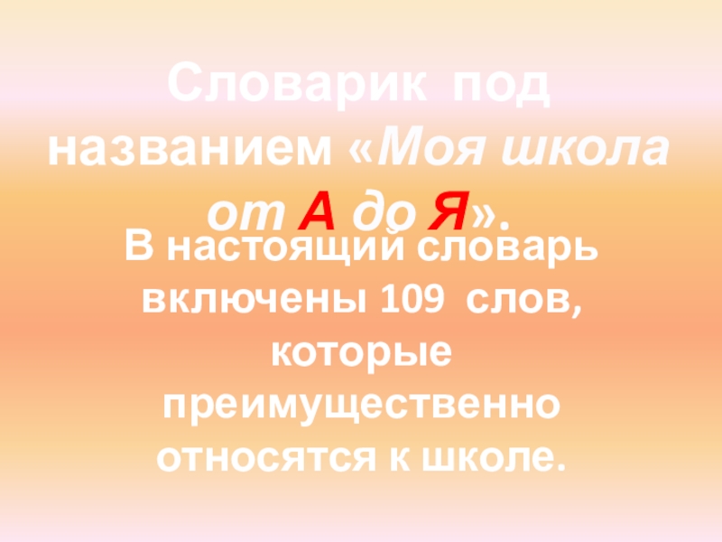 Слайд 8Словарик под названием «Моя школа от А до Я».