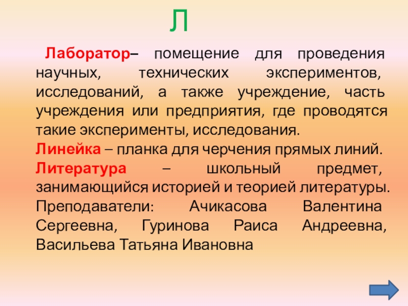 Литература – школьный предмет, занимающийся историей и теорией литературы. Преподаватели: Ачикасова Валентина Сергеевна, Гуринова Раиса Андреевна, Васильева Татьяна Ивановна