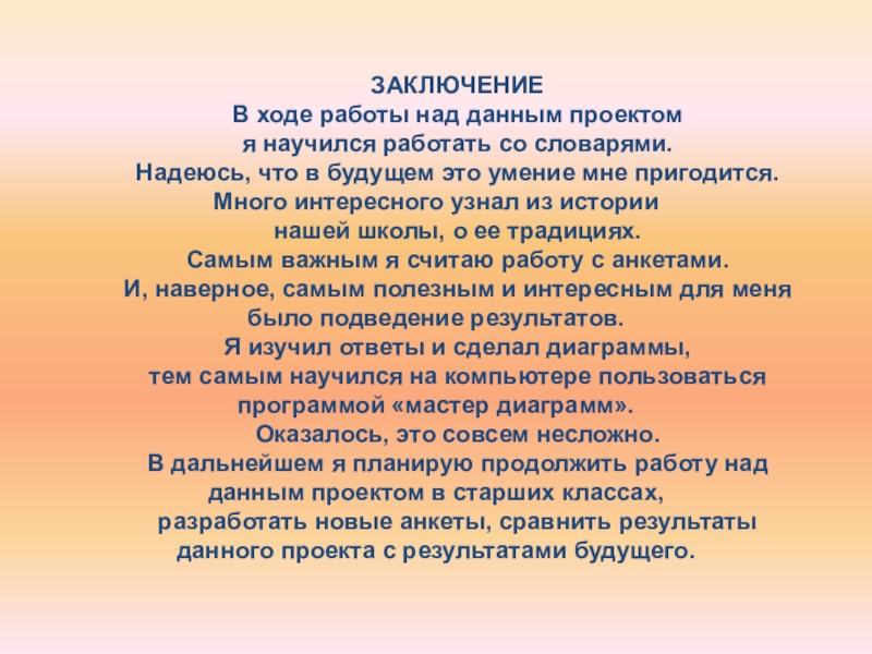 В дальнейшем я планирую продолжить работу над данным проектом в старших классах,