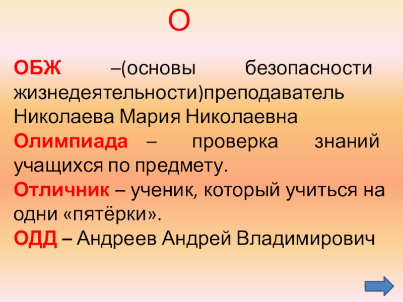 ОБЖ –(основы безопасности жизнедеятельности)преподаватель Николаева Мария Николаевна