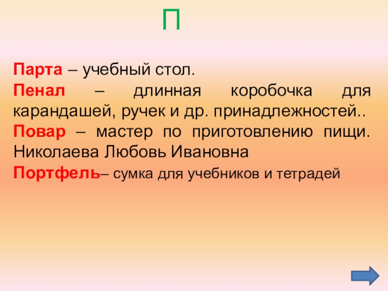 Парта – учебный стол.