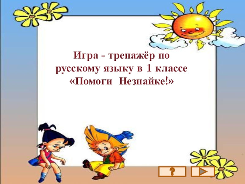 Слайд 1Игра - тренажёр по русскому языку в 1 классе «Помоги Незнайке!»