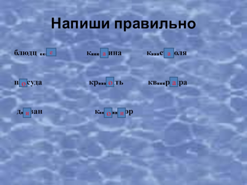 Напиши правильноблюдц …       к…ртина     к…стрюляп…суда