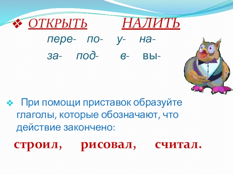 При помощи приставок образуйте глаголы, которые обозначают, что действие закончено: