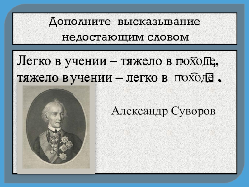 тяжело в учении – легко в походе .
