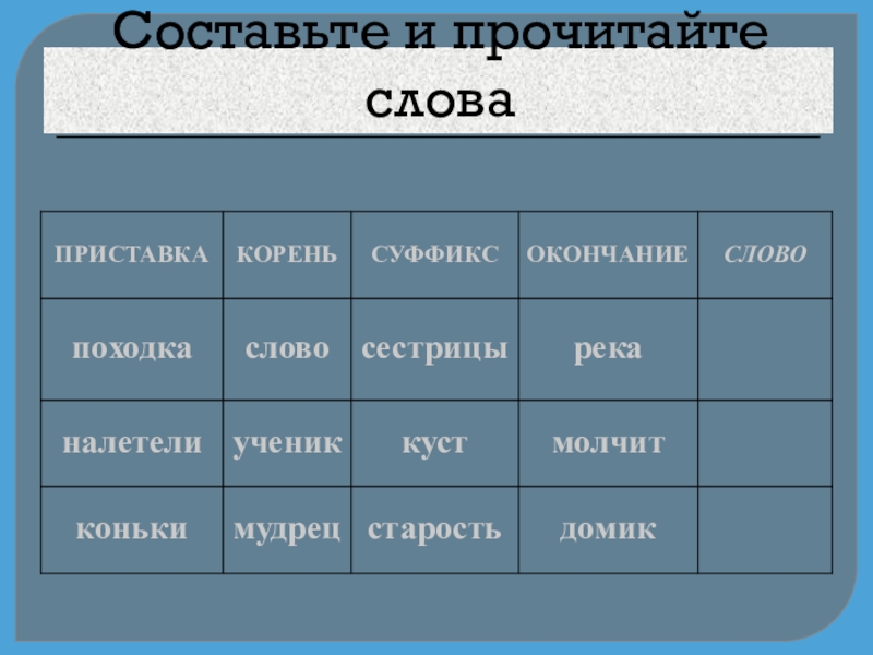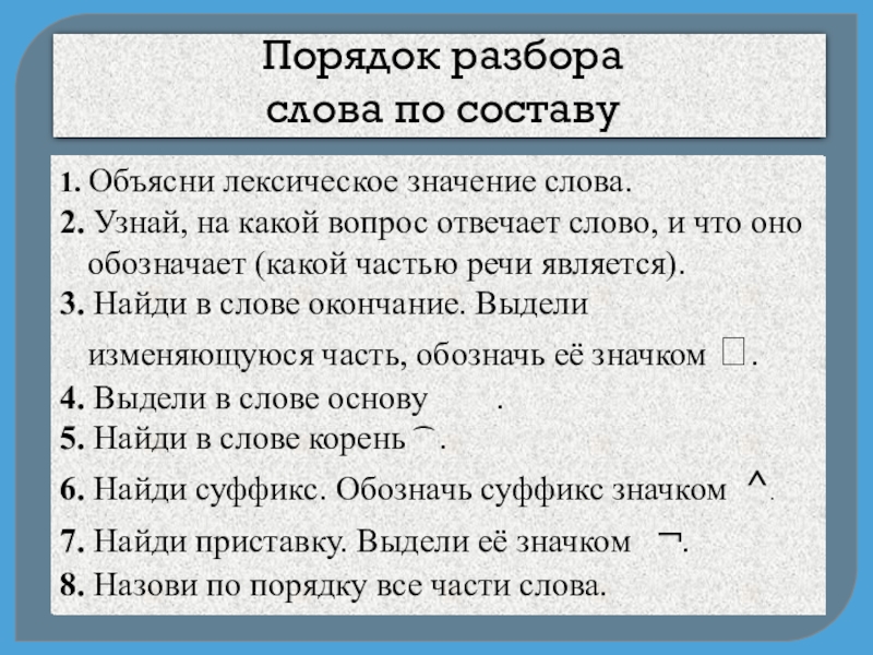 8. Назови по порядку все части слова.