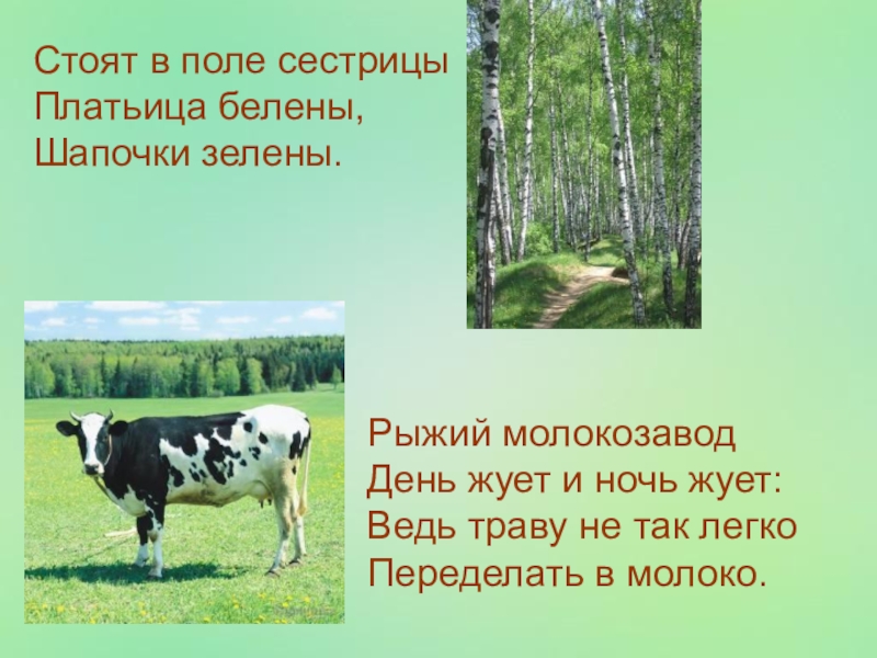 Стоят в поле сестрицыПлатьица белены, Шапочки зелены.