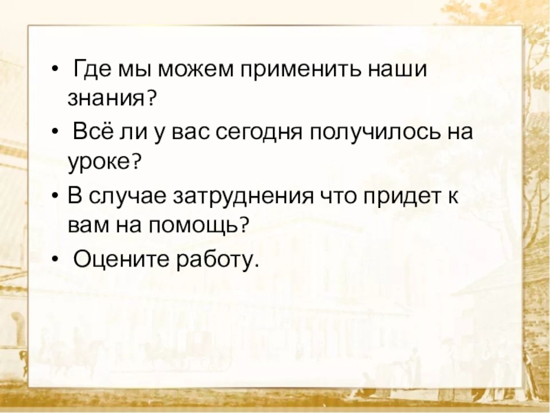 Где мы можем применить наши знания? Всё ли у вас сегодня получилось на уроке?В случае затруднения