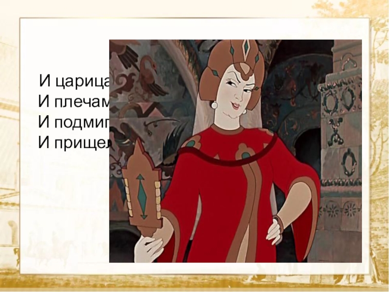 И царица хохотать, И плечами пожимать,  И подмигивать глазами, И прищелкивать перстами.