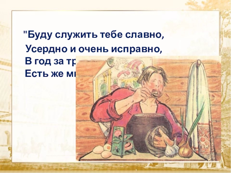 исправно, В год за три щелка тебе по лбу, Есть же мне давай вареную полбу"