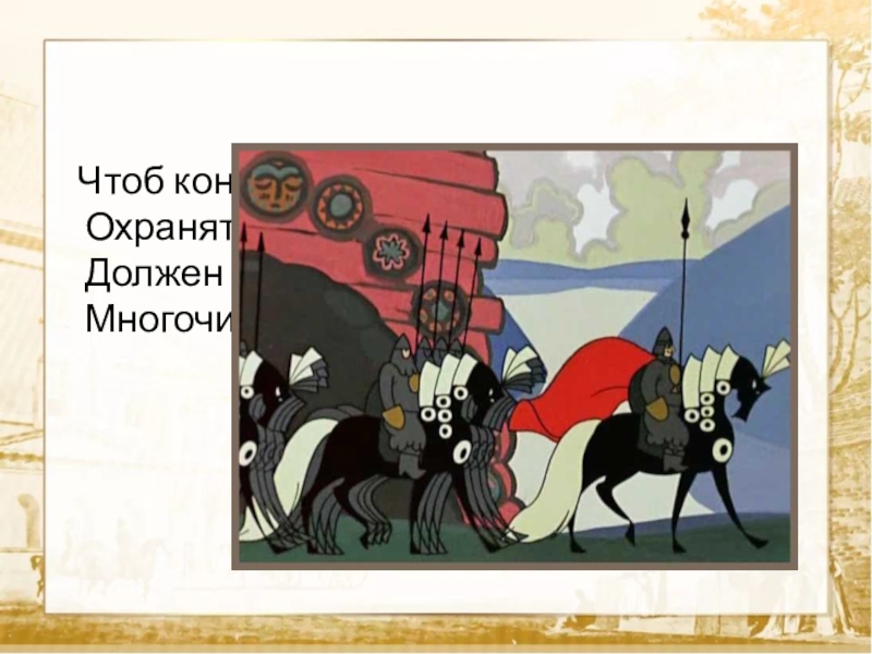 Чтоб концы своих владений Охранять от нападений,  Должен был он содержать Многочисленную рать.