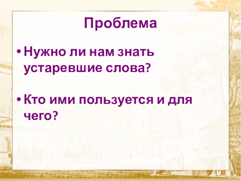 ПроблемаНужно ли нам знать устаревшие слова? Кто ими пользуется и для чего?