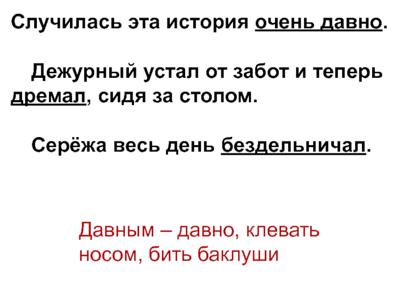 Давным – давно, клевать носом, бить баклуши