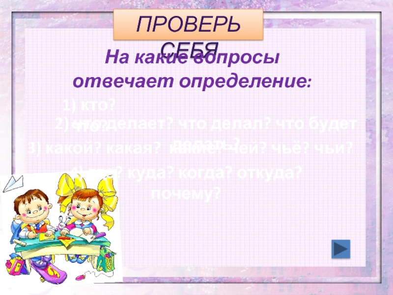 3) какой? какая? какие? чей? чьё? чьи?