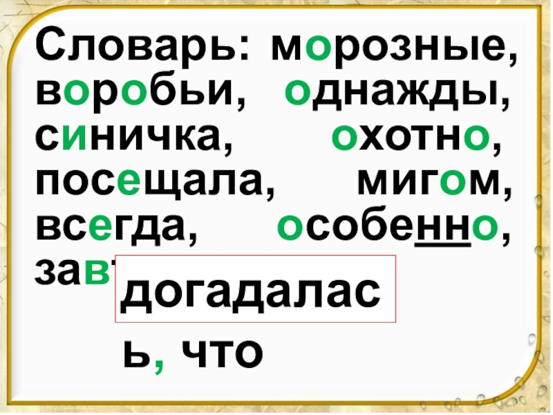 Посещала, подвесил, догадалась, зацепилась, стала клевать