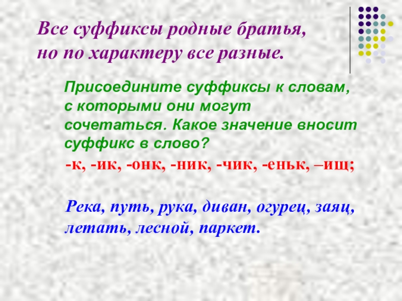 -к, -ик, -онк, -ник, -чик, -еньк, –ищ;