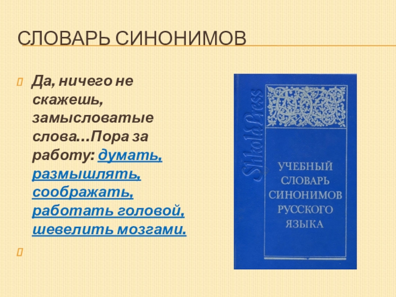 Да, ничего не скажешь, замысловатые слова…Пора за работу: думать, размышлять,