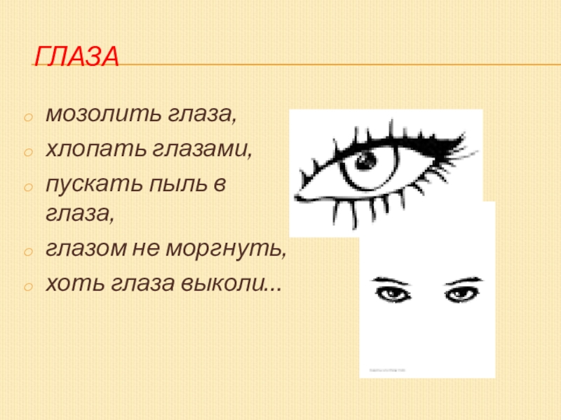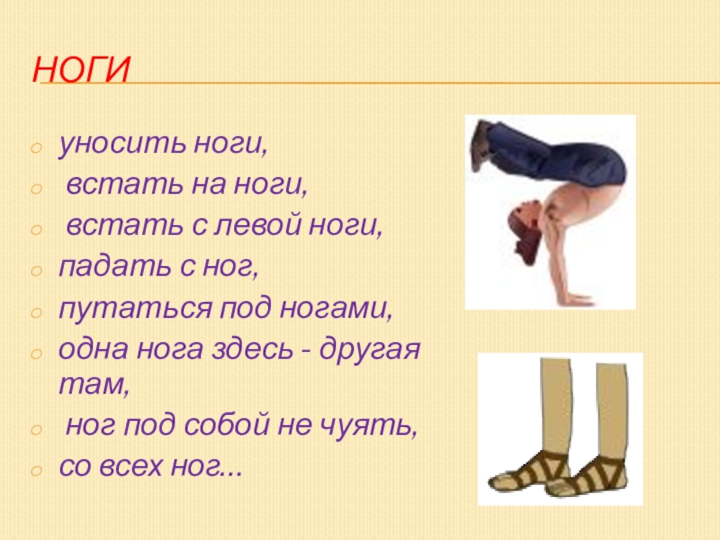 своем составе наименования частей человеческого тела ( голова, ноги, глаза, нос).