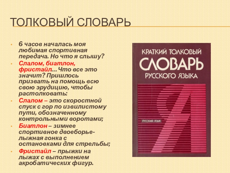 Слалом, биатлон, фристайл…Что все это значит? Пришлось призвать на помощь всю свою эрудицию, чтобы растолковать: