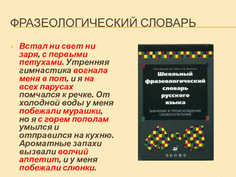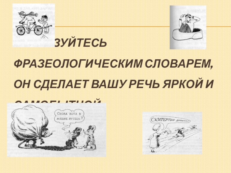 Слайд 13- ПОЛЬЗУЙТЕСЬ ФРАЗЕОЛОГИЧЕСКИМ СЛОВАРЕМ, ОН СДЕЛАЕТ ВАШУ РЕЧЬ ЯРКОЙ И САМОБЫТНОЙ.