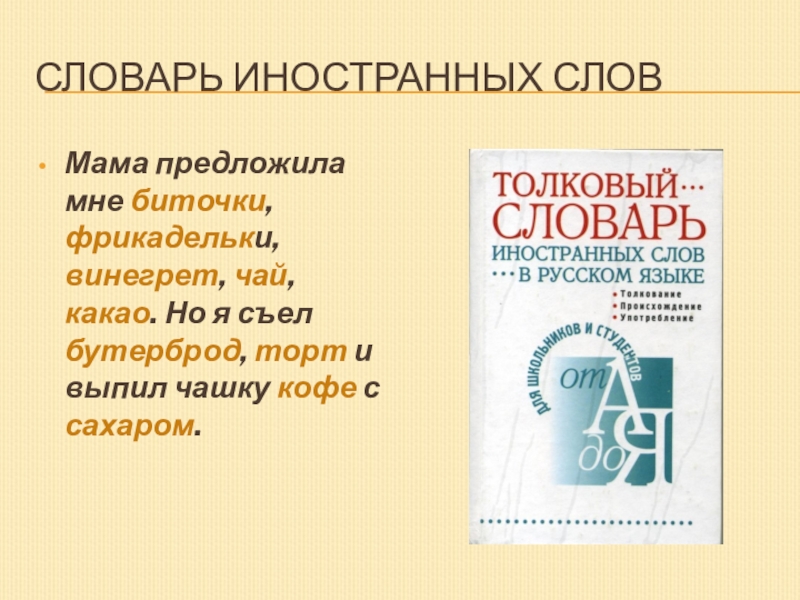 чтении газет, журналов, книг вы часто встречаетесь со словами, вошедшими в русский язык из других языков мира. Здесь вы можете получить справку о значении незнакомого иностранного слова, а также сведения о его происхождении.