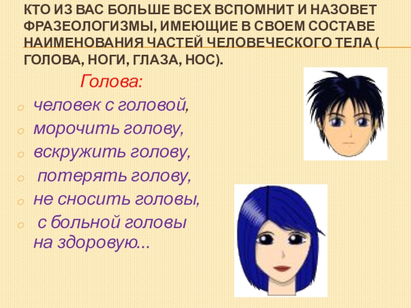 Слайд 9кто из вас больше всех вспомнит и назовет фразеологизмы, имеющие в