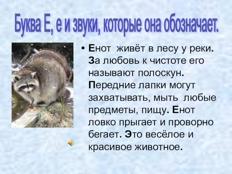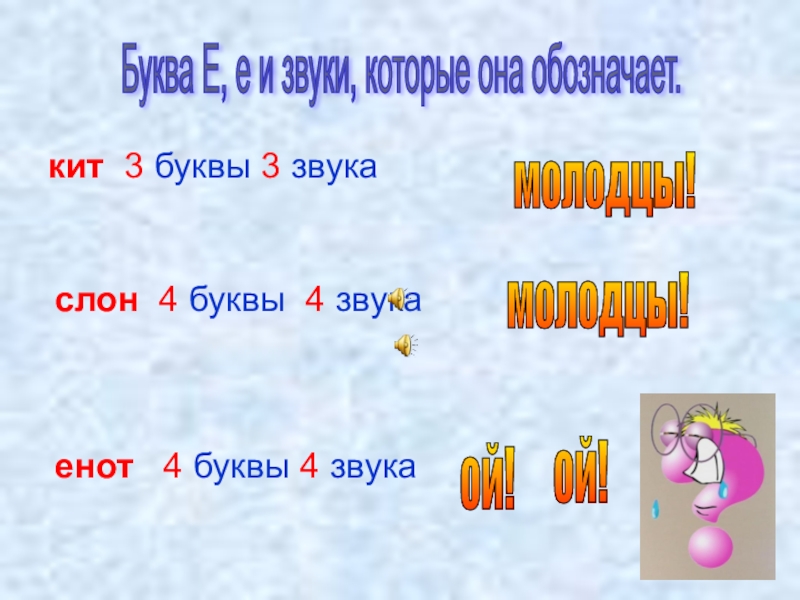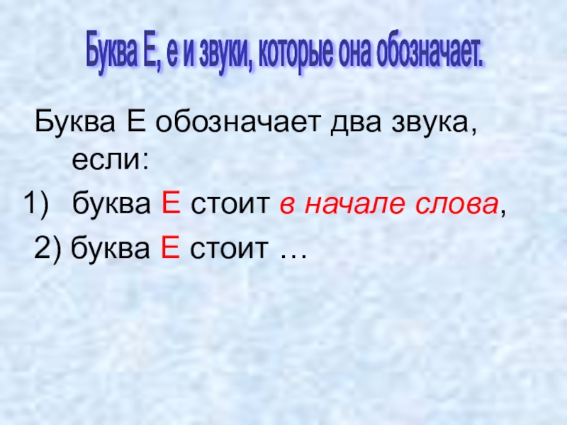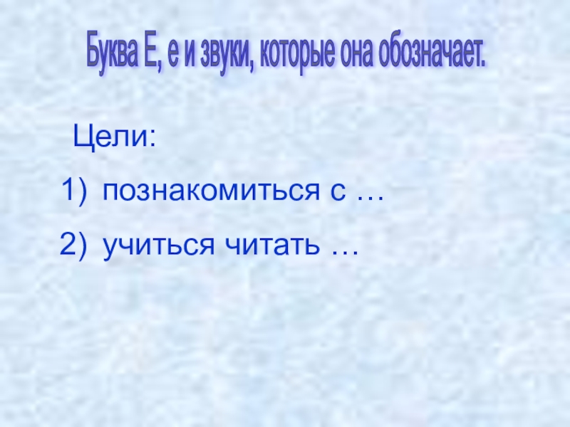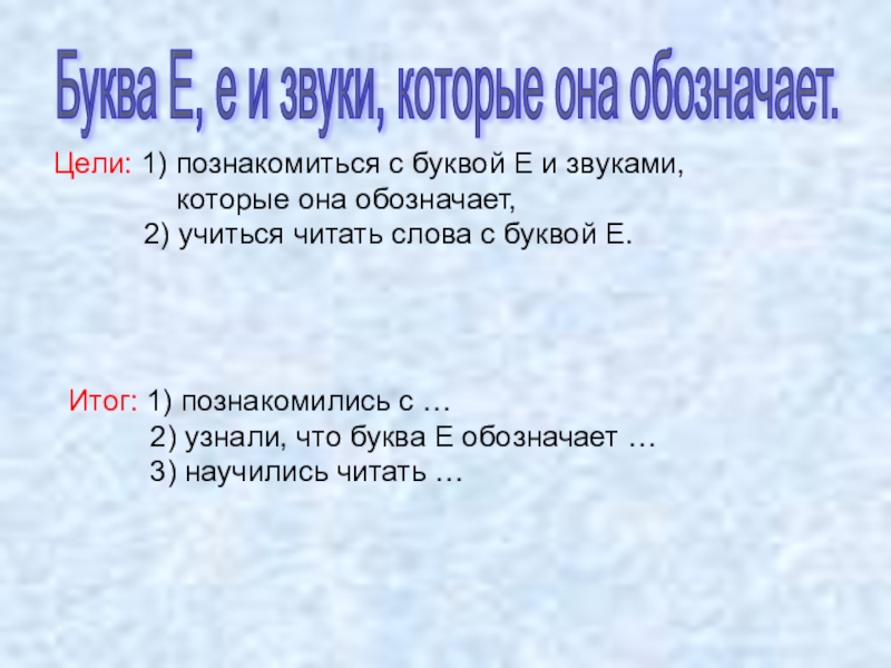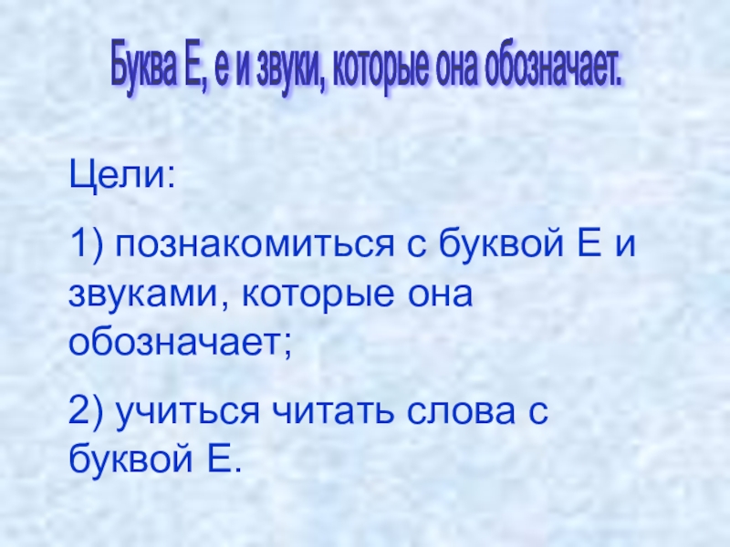 1) познакомиться с буквой Е и звуками, которые она обозначает;
