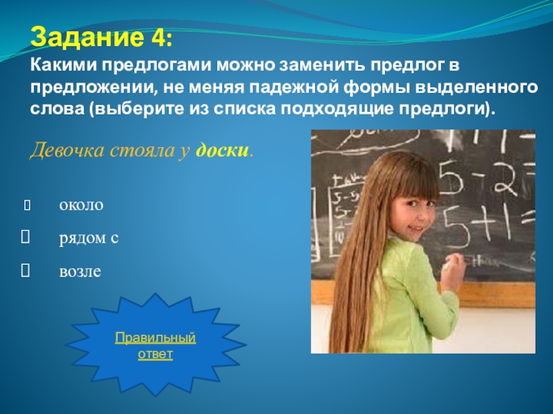 Девочка стояла рядом с доски.